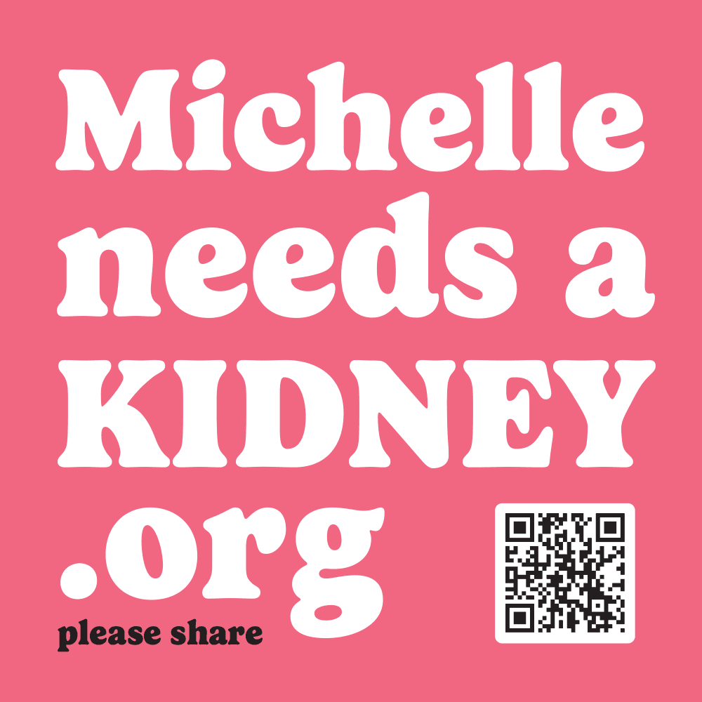 I’m Robert, Michelle’s husband. I’m a web developer, and I designed and built this site. I tried to donate my kidney to Michelle, and even found out we were a direct match! Crushingly, during the evaluation process, doctors discovered that I don’t actually have two fully-formed kidneys. I have no kidney on my right side, and I have one kidney on the left that has a smaller, kind-of quarter-kidney that’s attached to it in a peculiar way. That abnormality disqualified me from being a donor because of the risk to me. But I’m otherwise fine! After 43 years, what I learned is that I’ve never had two kidneys, and I’m healthy and active!